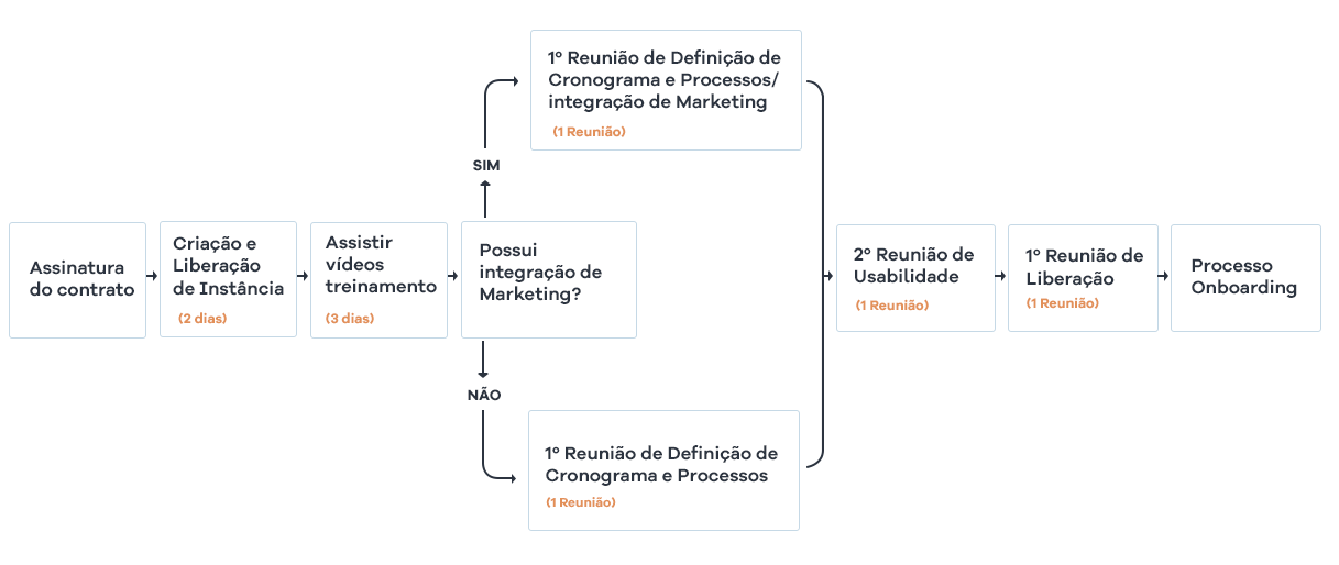 Nosso período de implantação é de 30 dias. Contamos com o seu apoio para realizar os entregáveis em um curto período de tempo, para que juntos a gente consiga finalizar a implantação no prazo determinado. Após a implantação, a usabilidade será acompanhada estrategicamente pelos nossos analistas de sucesso do cliente e tecnicamente pela nossa equipe de suporte.